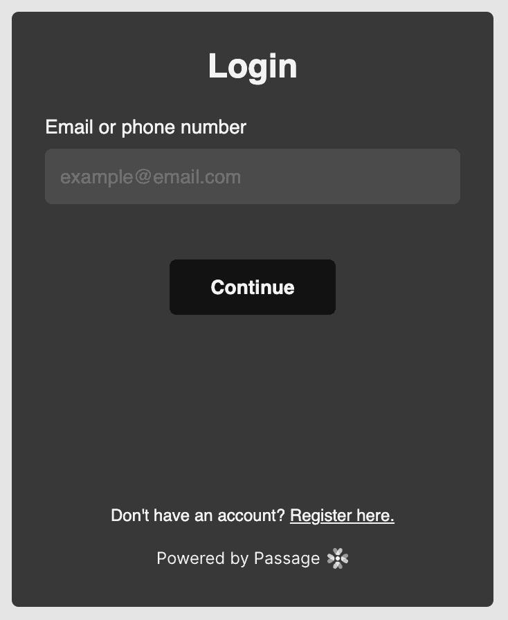 <passage-auth theme="dark"></passage-auth>The supported values for the theme attribute are: